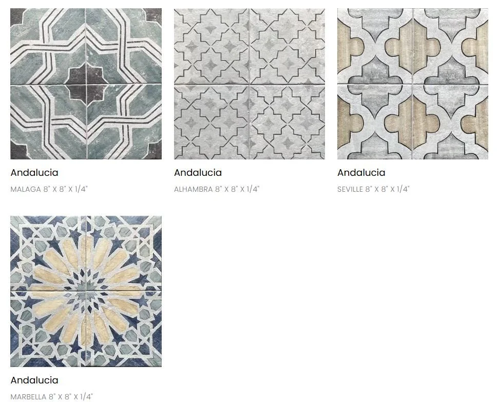 • Caliza Grand Canyon Havana Limerick Luxor Milton Milton Ridge Momentum Piazza Plume Quadrant Sedona Vintage Woodridge Alloy Andalucia Artista Atlanta Brick Barcelona Chelsea Chicklet Cotto Brick Gatsby Gresso Gibraltar Hampstead Hudson Brick Italia Kingston Wood Malibu Marmol Moroccan Nola Nomad Normandy Pacific Portofino Quarry Stella Stone Classics Tarragona Terracotta Urban Valencia Zahara Piccadilly Black Blizzard Squall
