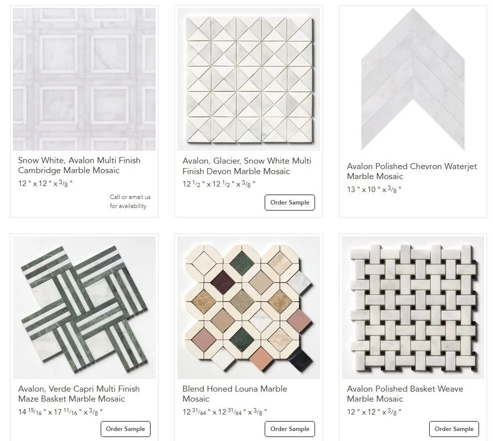 • Caliza Grand Canyon Havana Limerick Luxor Milton Milton Ridge Momentum Piazza Plume Quadrant Sedona Vintage Woodridge Alloy Andalucia Artista Atlanta Brick Barcelona Chelsea Chicklet Cotto Brick Gatsby Gresso Gibraltar Hampstead Hudson Brick Italia Kingston Wood Malibu Marmol Moroccan Nola Nomad Normandy Pacific Portofino Quarry Stella Stone Classics Tarragona Terracotta Urban Valencia Zahara Piccadilly Black Blizzard Squall