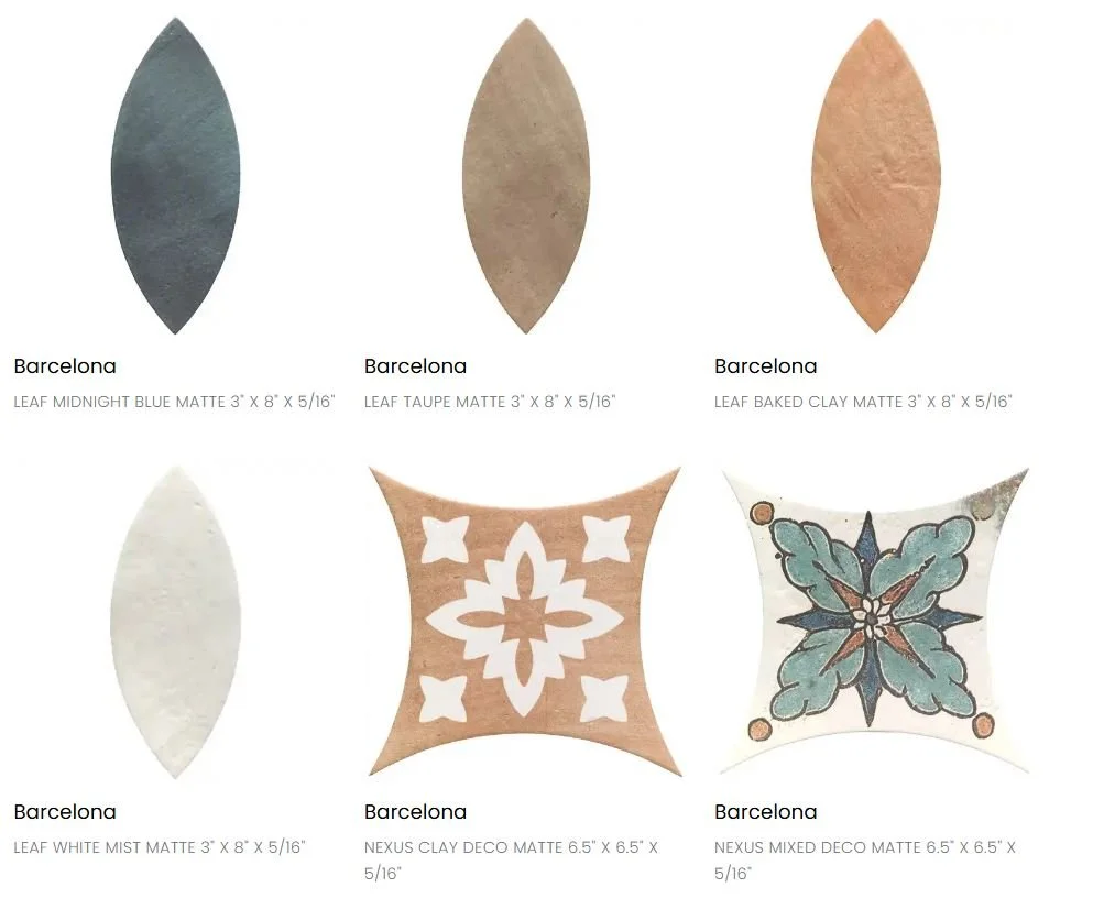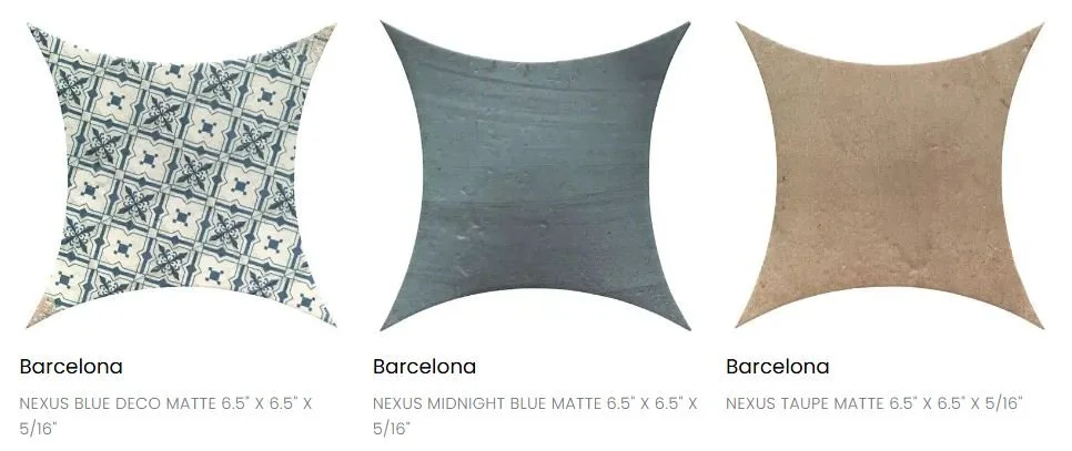 • Caliza Grand Canyon Havana Limerick Luxor Milton Milton Ridge Momentum Piazza Plume Quadrant Sedona Vintage Woodridge Alloy Andalucia Artista Atlanta Brick Barcelona Chelsea Chicklet Cotto Brick Gatsby Gresso Gibraltar Hampstead Hudson Brick Italia Kingston Wood Malibu Marmol Moroccan Nola Nomad Normandy Pacific Portofino Quarry Stella Stone Classics Tarragona Terracotta Urban Valencia Zahara Piccadilly Black Blizzard Squall