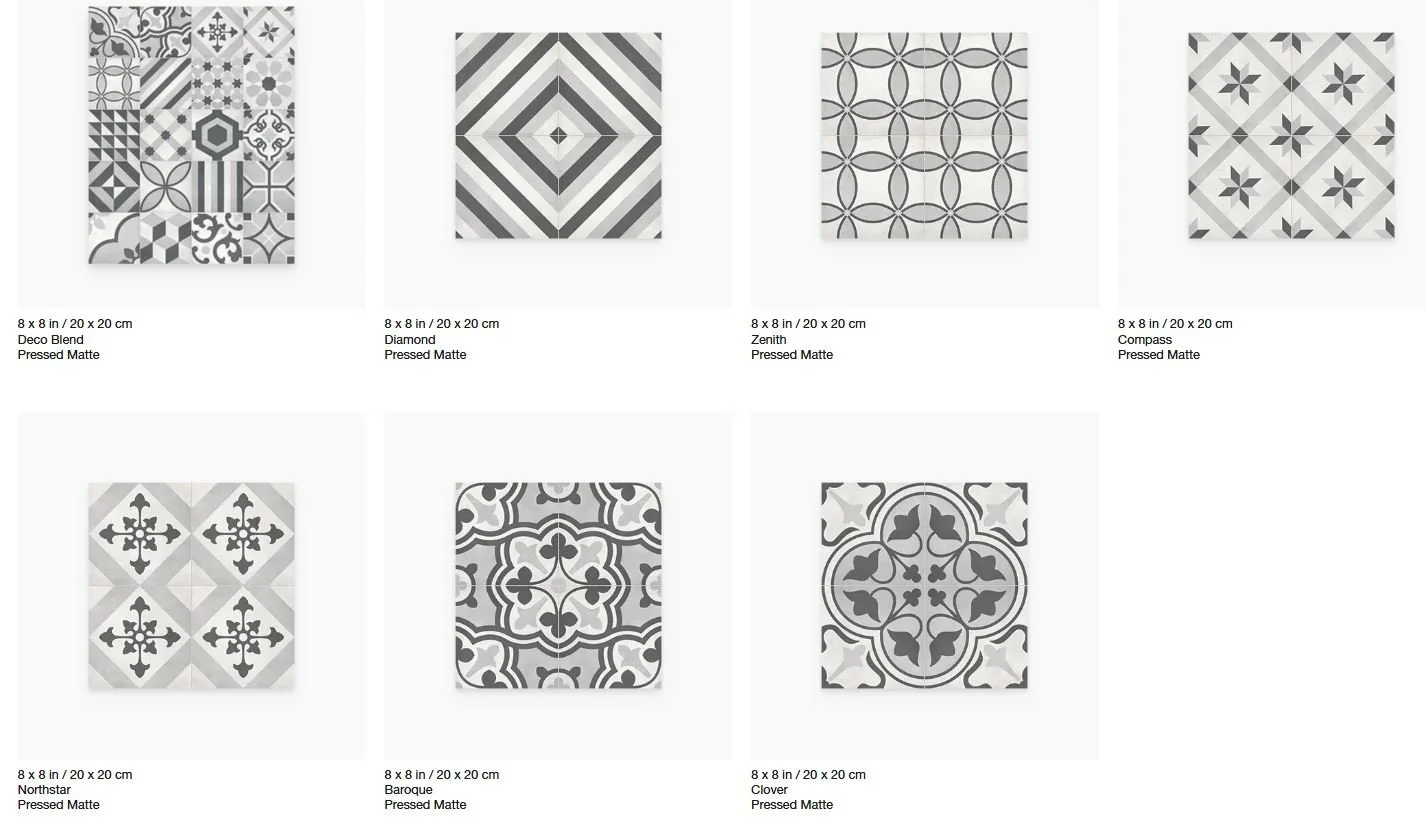 • Caliza Grand Canyon Havana Limerick Luxor Milton Milton Ridge Momentum Piazza Plume Quadrant Sedona Vintage Woodridge Alloy Andalucia Artista Atlanta Brick Barcelona Chelsea Chicklet Cotto Brick Gatsby Gresso Gibraltar Hampstead Hudson Brick Italia Kingston Wood Malibu Marmol Moroccan Nola Nomad Normandy Pacific Portofino Quarry Stella Stone Classics Tarragona Terracotta Urban Valencia Zahara Piccadilly Black Blizzard Squall