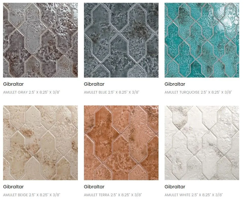 • Caliza Grand Canyon Havana Limerick Luxor Milton Milton Ridge Momentum Piazza Plume Quadrant Sedona Vintage Woodridge Alloy Andalucia Artista Atlanta Brick Barcelona Chelsea Chicklet Cotto Brick Gatsby Gresso Gibraltar Hampstead Hudson Brick Italia Kingston Wood Malibu Marmol Moroccan Nola Nomad Normandy Pacific Portofino Quarry Stella Stone Classics Tarragona Terracotta Urban Valencia Zahara Piccadilly Black Blizzard Squall