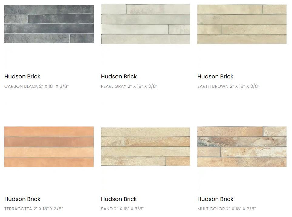 • Caliza Grand Canyon Havana Limerick Luxor Milton Milton Ridge Momentum Piazza Plume Quadrant Sedona Vintage Woodridge Alloy Andalucia Artista Atlanta Brick Barcelona Chelsea Chicklet Cotto Brick Gatsby Gresso Gibraltar Hampstead Hudson Brick Italia Kingston Wood Malibu Marmol Moroccan Nola Nomad Normandy Pacific Portofino Quarry Stella Stone Classics Tarragona Terracotta Urban Valencia Zahara Piccadilly Black Blizzard Squall