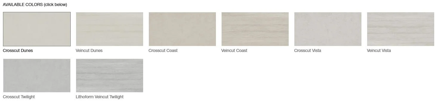 • Caliza Grand Canyon Havana Limerick Luxor Milton Milton Ridge Momentum Piazza Plume Quadrant Sedona Vintage Woodridge Alloy Andalucia Artista Atlanta Brick Barcelona Chelsea Chicklet Cotto Brick Gatsby Gresso Gibraltar Hampstead Hudson Brick Italia Kingston Wood Malibu Marmol Moroccan Nola Nomad Normandy Pacific Portofino Quarry Stella Stone Classics Tarragona Terracotta Urban Valencia Zahara Piccadilly Black Blizzard Squall