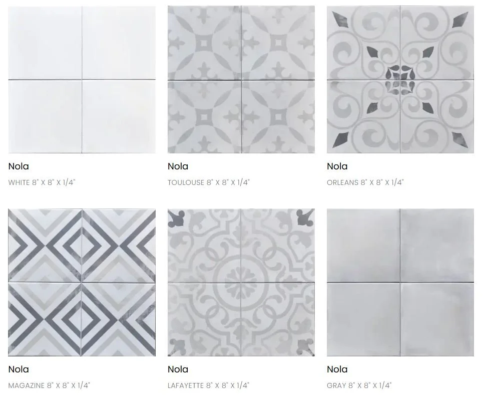 • Caliza Grand Canyon Havana Limerick Luxor Milton Milton Ridge Momentum Piazza Plume Quadrant Sedona Vintage Woodridge Alloy Andalucia Artista Atlanta Brick Barcelona Chelsea Chicklet Cotto Brick Gatsby Gresso Gibraltar Hampstead Hudson Brick Italia Kingston Wood Malibu Marmol Moroccan Nola Nomad Normandy Pacific Portofino Quarry Stella Stone Classics Tarragona Terracotta Urban Valencia Zahara Piccadilly Black Blizzard Squall