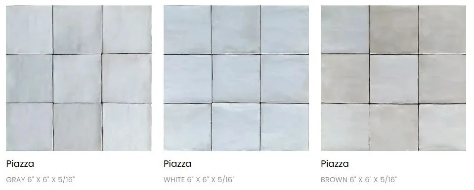 • Caliza Grand Canyon Havana Limerick Luxor Milton Milton Ridge Momentum Piazza Plume Quadrant Sedona Vintage Woodridge Alloy Andalucia Artista Atlanta Brick Barcelona Chelsea Chicklet Cotto Brick Gatsby Gresso Gibraltar Hampstead Hudson Brick Italia Kingston Wood Malibu Marmol Moroccan Nola Nomad Normandy Pacific Portofino Quarry Stella Stone Classics Tarragona Terracotta Urban Valencia Zahara Piccadilly Black Blizzard Squall